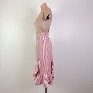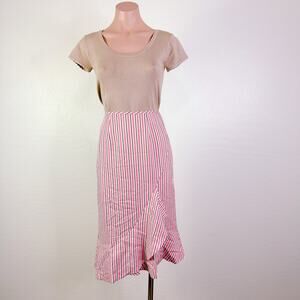 Ted Baker Coryn Coquette Striped Ruffle Modest Asymmetric Midi Skirt Pink size 0