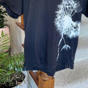 great pre loved condition tagging as a size medium ( no size tag ) Black dandelion shirt by Ted Baler. pure cotton, gently worn, a lot of life left
