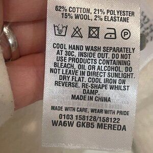 • Material: 62% Cotton, 21% Polyester, 15% Wool & 2% Elastine