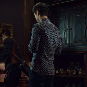 Tags: Netflix, formal, office, business, dinner, date, wedding, button up, button down, collar, pattern, patterned, Magnus Bane, Clary Fray, Isabelle Lightwood, Mortal Instruments