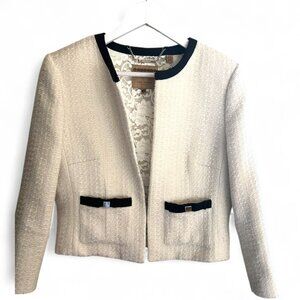 Ted Baker Daara Cream with Black Trim Tweed Blazer | Size 3 (8 USA)