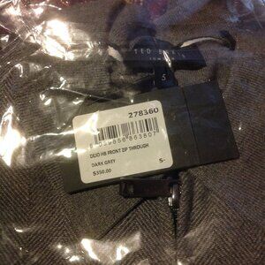 Up for sale is a brand new with tags men's Ted Baker Dejo gray herringbone zip up lightweight jacket, USA size extra-large (EU5).