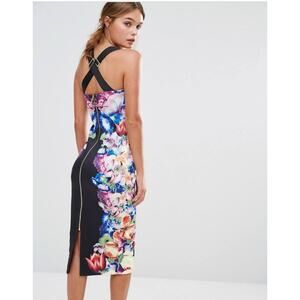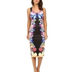 Ted Baker Deony Colorful Floral Bodycon Scuba Midi Dress US 6 Buckle Strap