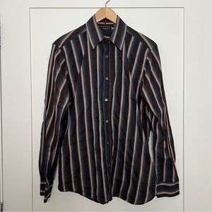 Ted Baker Dress Shirt Mens Size 3 Black Striped Button Up Long Sleeve Cotton