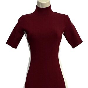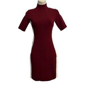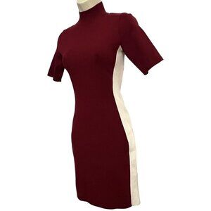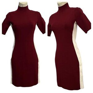 Ted Baker Dress Womens Small Oxblood Red Cream White Side Panels Short Sleeve Stretch Knit Bodycon Evelynn Career Office Party