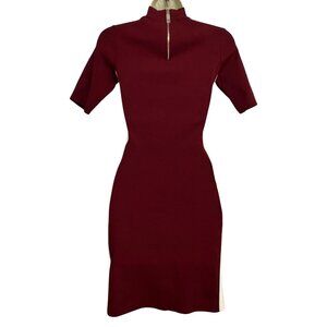 Ted Baker Dress Womens Small Oxblood Red Cream Short Sleeve Knit Bodycon Evelynn