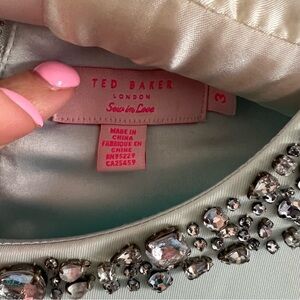 Ted Baker Elegant Mint Green Dress with Embellished Neckline