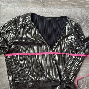 Ted Baker Elwiira Gathered Metallic Wrap Top - Gray Large