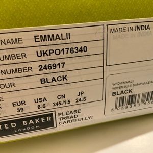 Ted Baker London Emalia Women’s Black Leather Slides Braided Straps Sandals Block Heel Mule Pump