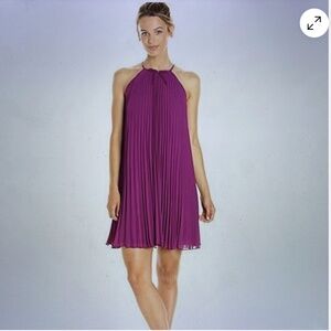Trapeze style purple pleated mini dress. Perfect for a special occasion, like a wedding. Size 2. In excellent condition.