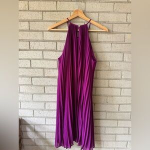 Ted Baker pleated dress, Emelay cocktail dress, magenta halter dress, Ted Baker size 6 US, purple pink party dress, special occasion mini dress, wedding guest dress, Ted Baker bow detail dress, pleated swing dress, elegant holiday dress
