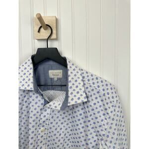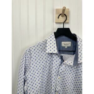 Ted Baker Endurance Blue White Flower Long Sleeve Button Down 17 36/37 #54