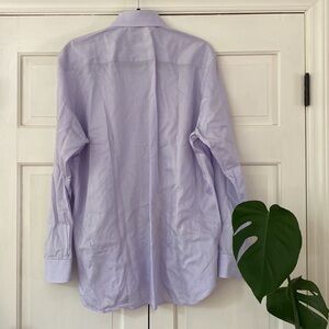 Looks like a purple stripe to me - but could also look blue depending on other colors in outfit. Minor imperfections from wear such as an occasional thred from a stripe popping up - like a “pull”. Only a couple of those (pictured). Recently dry cleaned. Size is 16.5 - which is a large 34/35. Retail $150.