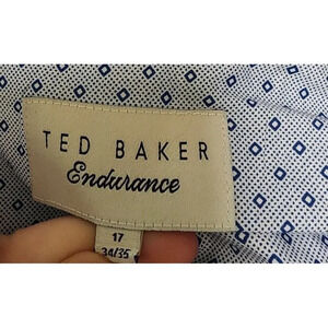 Ted Baker Endurance Mens Button Front Shirt Size 17 34-35 Blue Diamond Print