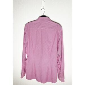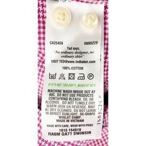 Ted Baker Endurance Men's Long Sleeve Button Down Shirt Red White Gingham Paisley Flip Cuffs Collar Accents
