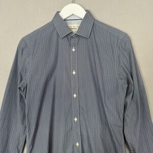 Ted Baker Endurance Shirt Mens 15 Blue Geometric Slim Fit Wavy Printed Retro