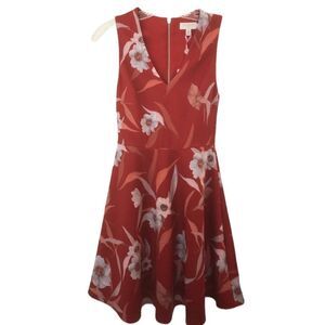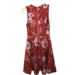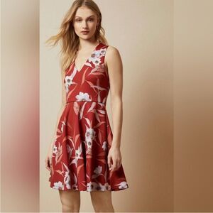 Ted Baker Enya Red Cabana V Neck Sleeveless Skater Dress in Dark Brown 4/6