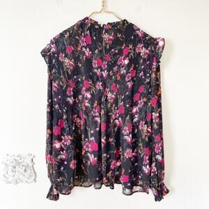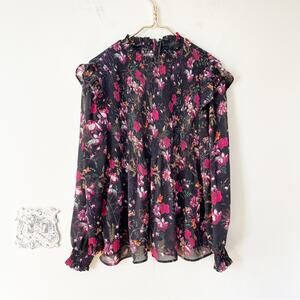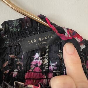Ted Baker Enyya Fern Forest Floral High Neck Smock Blouse 4 / US 10 L