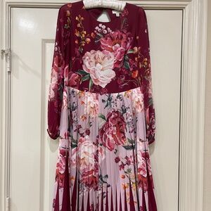 Ted Baker Esperan Serenity contrast pleated dress. See last picture for a slight discoloration. Otherwise, excellent condition. Ted Baker size 5 = US Size 16.