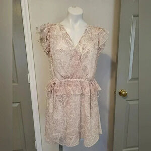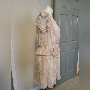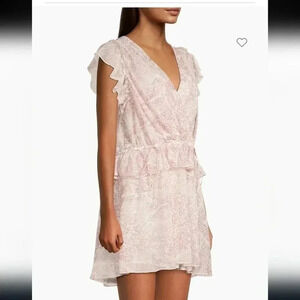 Ted Baker Evelyna Coral Printed Ruffle Flutter Sleeve Texture Mini Dress(4)NWT