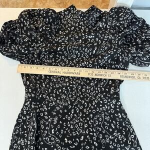 Ted Baker Exaggerated Sleeve Abstract Cat Print Mini Dress Sz 2 US S Black Raayy