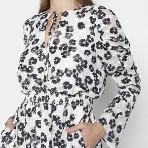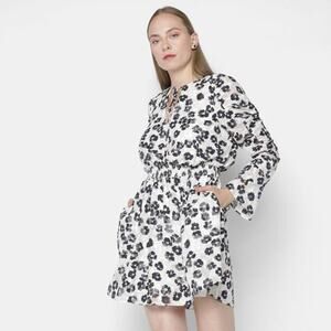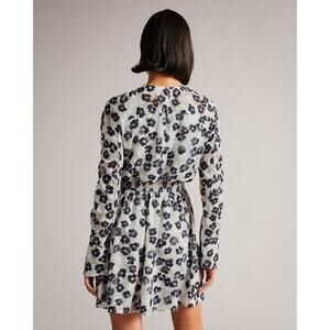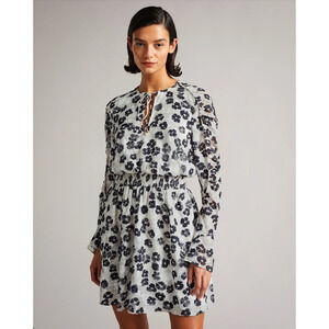 Ted Baker Felici Mini Dress Ivory Black Floral Ruched Long Sleeve 6 US (Ted 2)