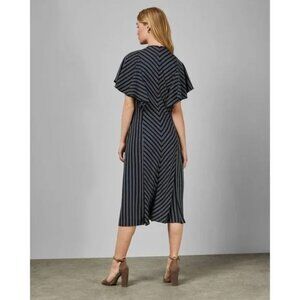 Ted Baker ~Flissie Navy Zip Front Striped Midi Dress in US size 10 (Ted size 4)