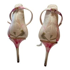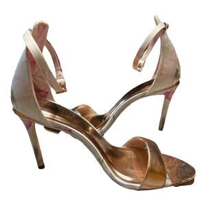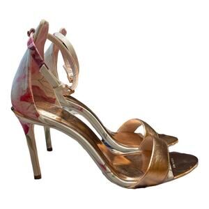 Ted Baker Floral Gold Stilettos Heel Sandals Women's Size 8.5