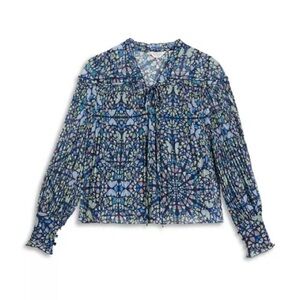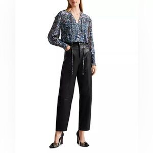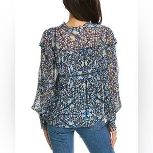 Ted Baker Florrei Printed Ruffled Tie Neck Blouse Size 2 $195