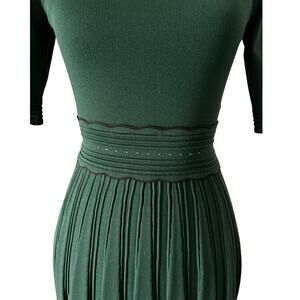 Ted Baker Forest Green Knit Skater Dress XS – Sculpted Pleats, Scallop Trim