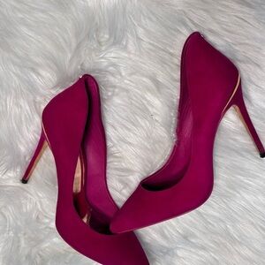 Chic fuchsia heels by Ted Baker. Sleek design with a pointed toe. Ideal for elevating any outfit.