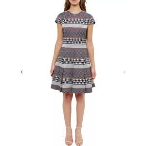Ted Baker Glity Metallic Jacquard Pleated Skater Dress Size 4 NWT