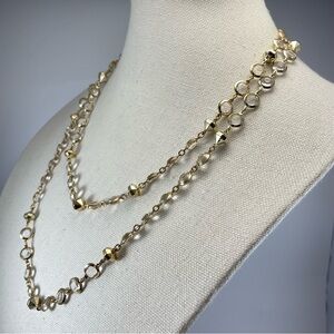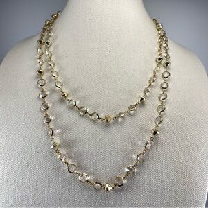 Ted Baker Gold Tone Glass Rhinestone Chain 50” Long Statement Boho Necklace