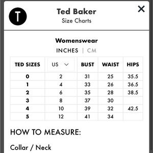 • Size: Ted Baker 5 (equivalent to US 12–14; please refer to brand sizing)