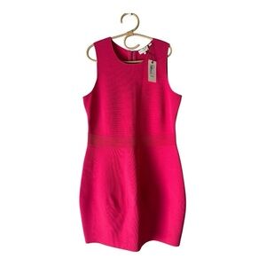 Turn heads in this vibrant hot pink sheath dress from Ted Baker London. Crafted from a stretchy, structured knit fabric, this dress hugs in all the right places while offering comfort and style. The sleeveless silhouette, fitted waist, and subtly flared skirt create a flattering, timeless shape perfect for weddings, events, or a polished office look.