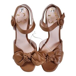 Ted Baker HEMYLA Brown Leather Block Heel Sandals EU38 US 7.5 Feminine Bow
