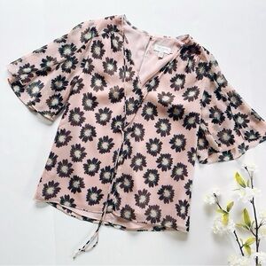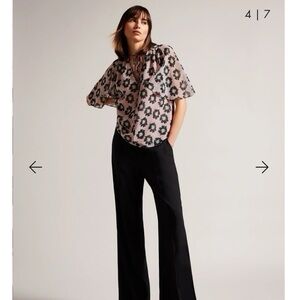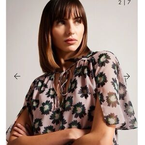 Ted Baker Harlynn Floral Split Sleeve Top with Neck Tie