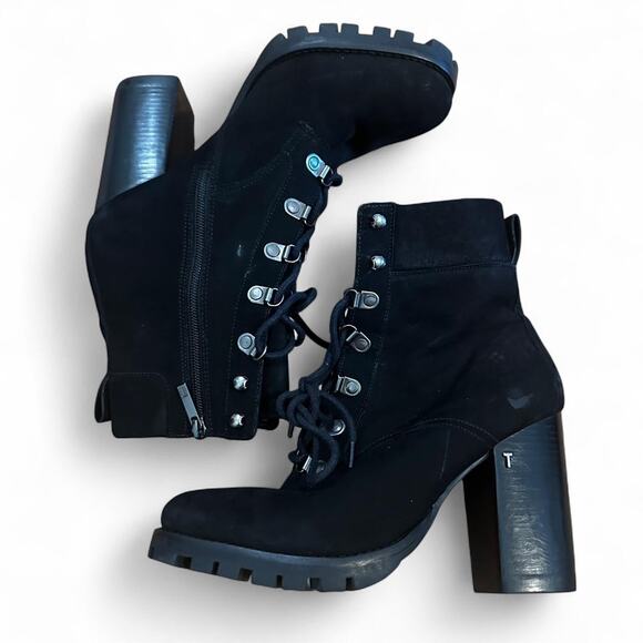 Ted Baker size 40 Black suede lace-up ankle boots some wear on suede as shown but still great condition