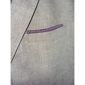 The Ted Baker Herringbone Linen Blend 2Btn Blazer Jacket in size 5/Large is a classic and sophisticated piece for men. With a regular length and a medium chest size, this jacket features a two-button single-breasted front, button sleeve detail, and a single vented back. Made from a luxurious blend of linen and cotton, this blazer comes in a stylish black and white herringbone pattern, making it versatile and perfect for various occasions. It is a timeless addition to any man's wardrobe, embodying the quality and style synonymous with the Ted Baker brand.