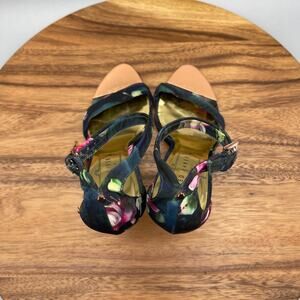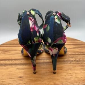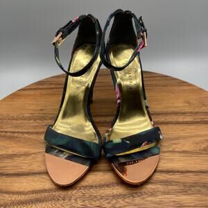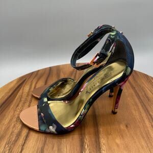 Ted Baker High Heels Womens Size 6.5 / 37 Black Floral Open Toe Stiletto Pumps