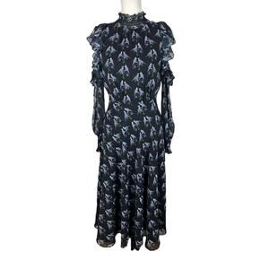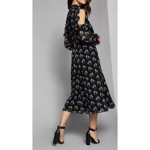 Ted Baker Hilaina Love Birds Midi Dress Black Cold Shoulder Size 0 or US 2