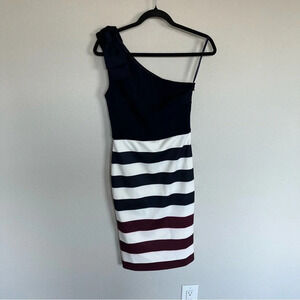 TED BAKER • Hilila Rowing Stripe One Shoulder Dress Navy Multi Casual Cocktail Party