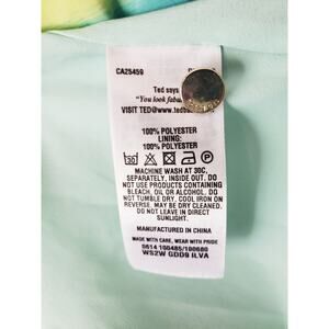 Style: Multicolor stripe, sleeveless, knee length dress. Keyhole with button and loop closure at back neck, side zip closure, tie at waist. Lined. 100& polyester.