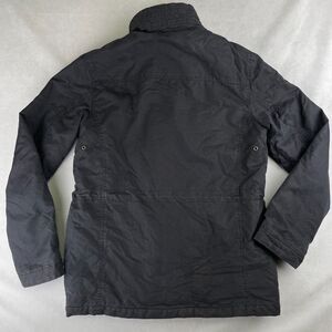 Light wear, minor signs of use including slight exterior fading and creasing, and a faint mark on the inner quilted lining. No holes or tears observed. Zipper and snaps function properly; drawcords intact.