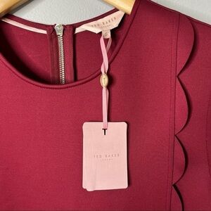 Ted Baker Maroon Scallop Overlay Sleeveless Shift Dress