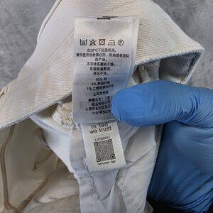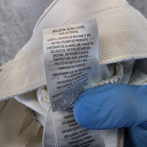 Materials: 95% cotton, 4% polyester, 1% elastodiene (per care tag).