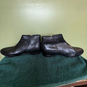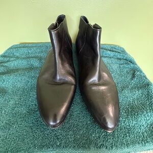 The EUC Ted Baker Jeema Black Leather Ankle Boots are a stylish and versatile addition to any woman's wardrobe. Featuring a classic ankle shaft style, solid black color, and flat heel design, these boots are perfect for year-round wear. With a convenient zip closure and medium shoe width, they offer comfort and ease of styling. Crafted from high-quality leather, these Ted Baker boots showcase the brand's signature attention to detail with a sleek zipper accent, making them a timeless and fashionable choice for any season.