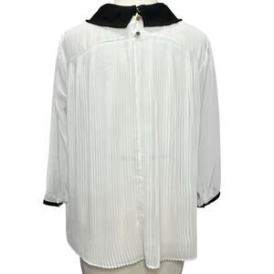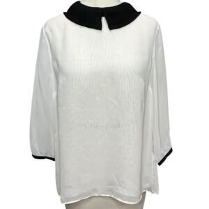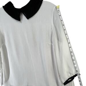 Ted Baker Jenya Blouse Womens US Size S (4-6) Off White Black Pleated Peter Pan Collar 3/4 Modest