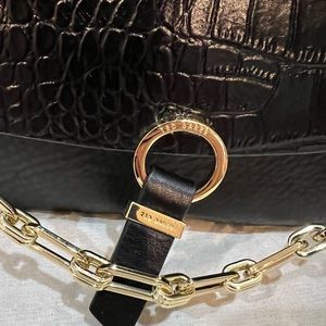 Adorable Ted Baker Gold Chain Black Leather Crossbody