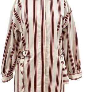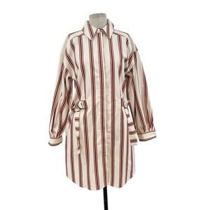 Ted Baker Kaate Shirt Dress With Waist Tie Cream Red Stripe Size 1 US 4